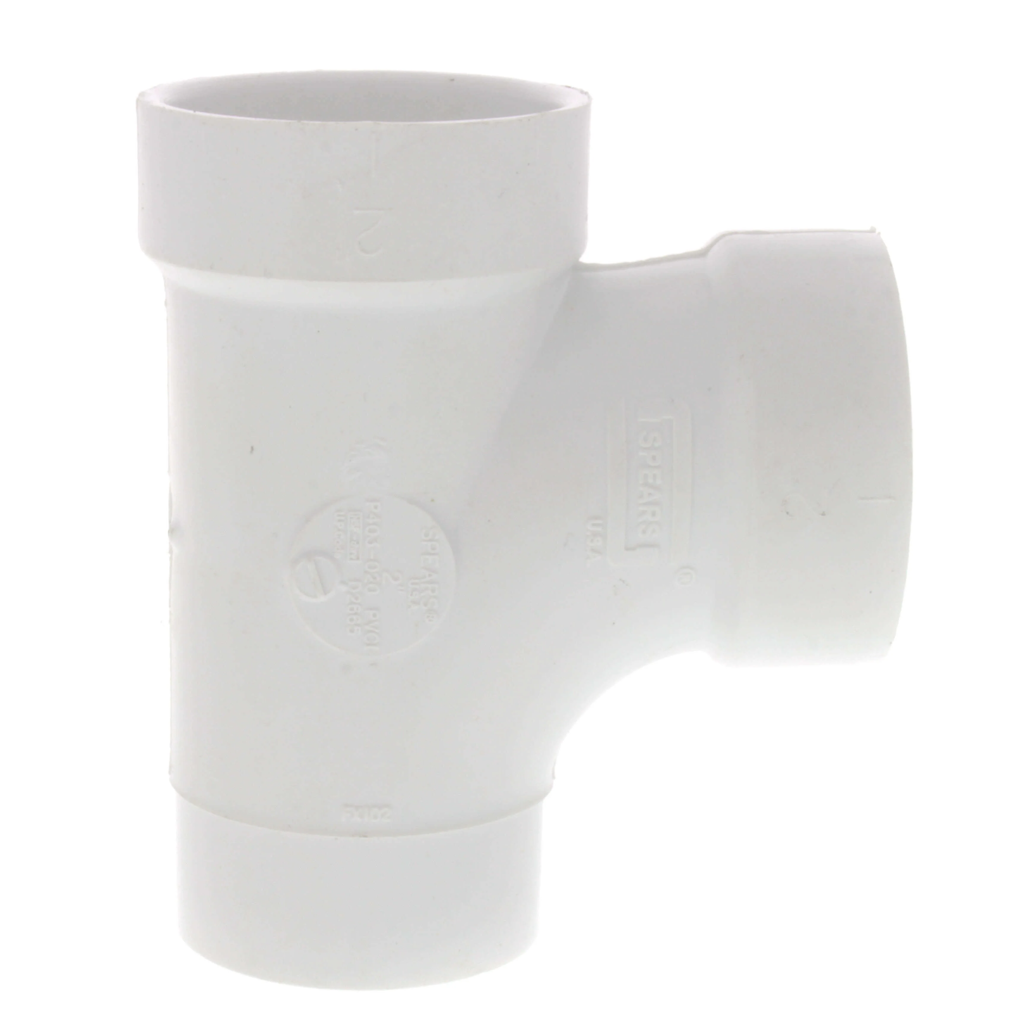 SPEARS VALVES P403-020 Sanitary Tee, PVC, DWV, Spigot x Hub x Hub, 2 Inch Size