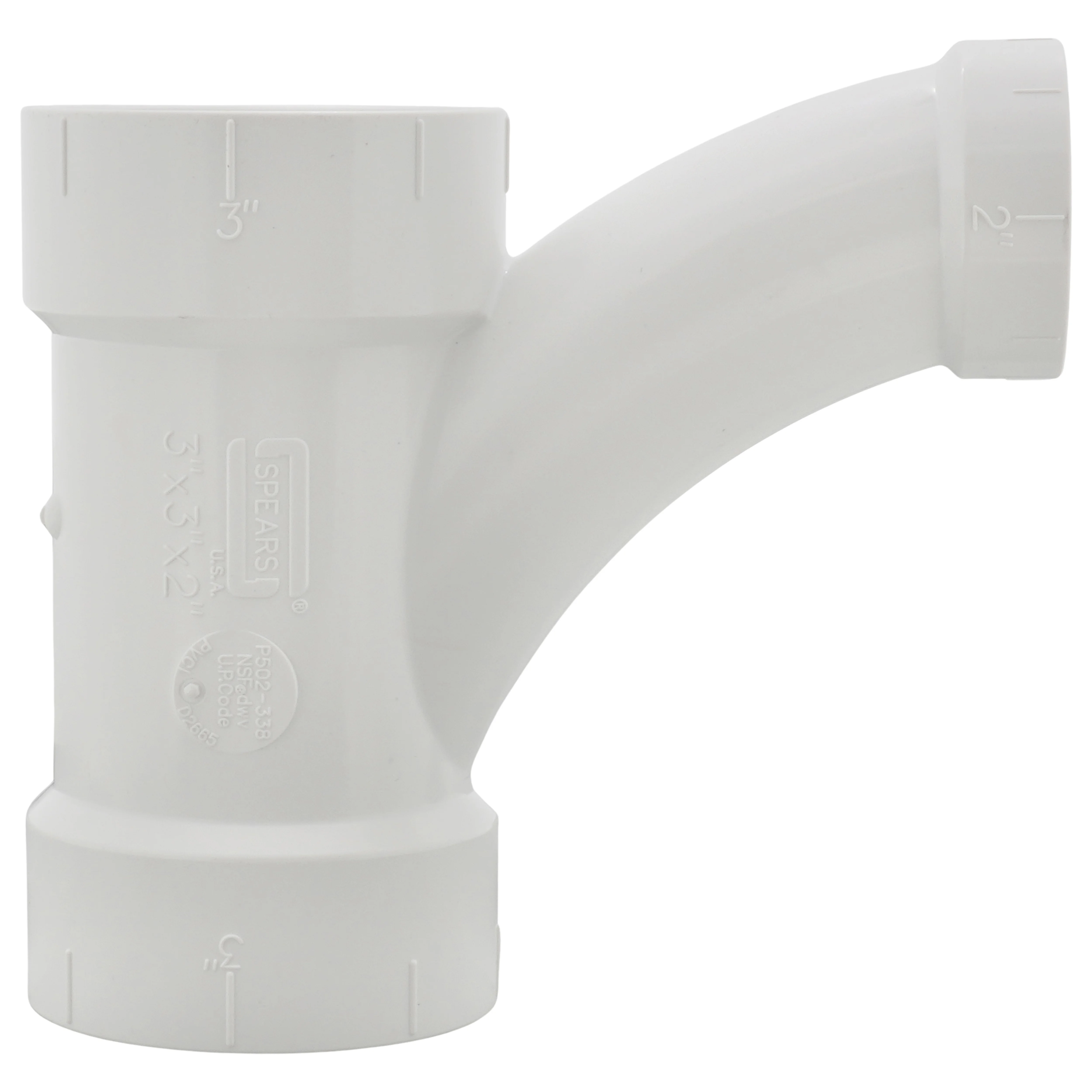 SPEARS VALVES P502-338 Drain Waste Vent Combination Wye, 1/8 Bend, Hub x Hub x Hub, 3 x 3 x 2 Size, PVC