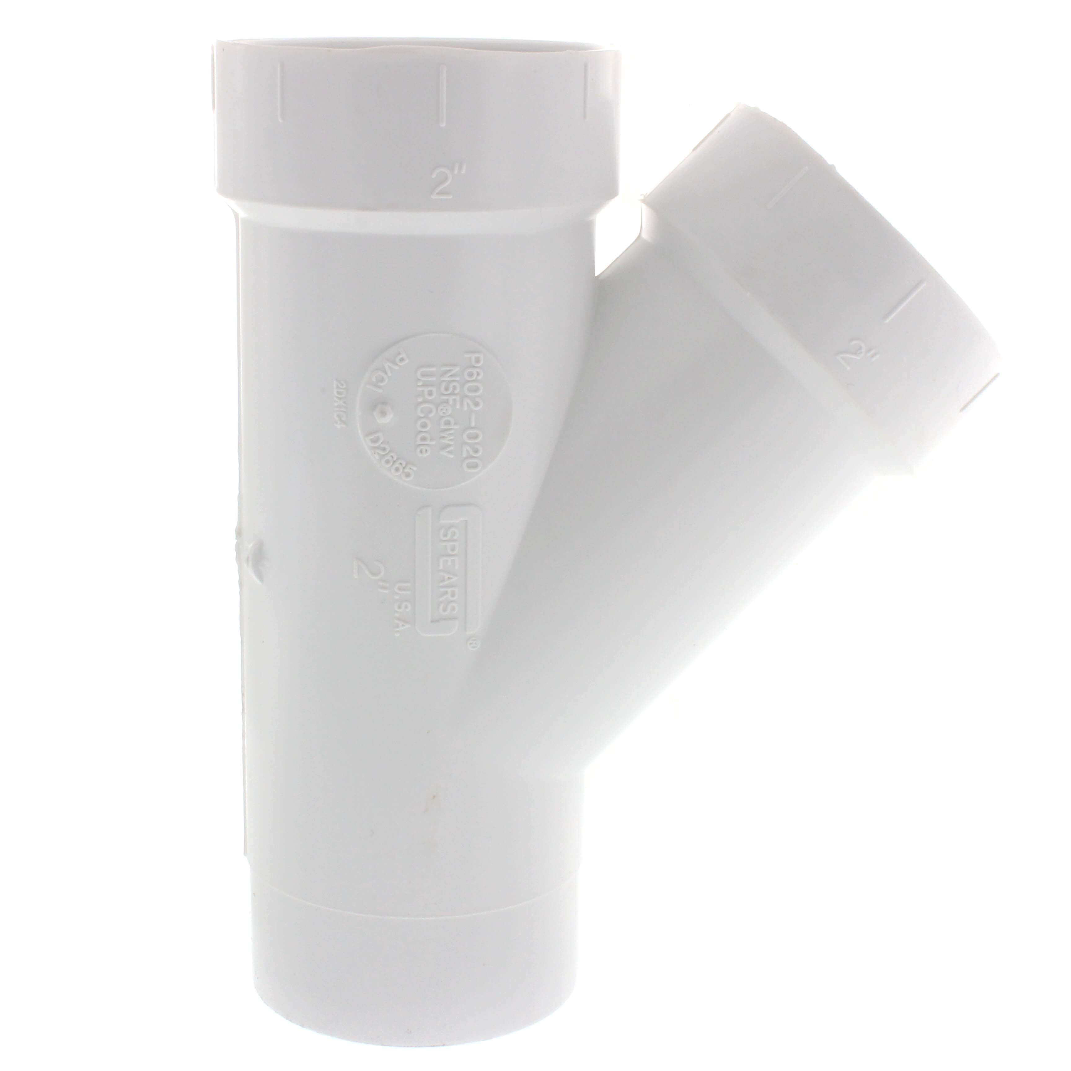 SPEARS VALVES P602-020 Drain Waste Vent Street Wye, Spigot x Hub x Hub, 2 Size, PVC