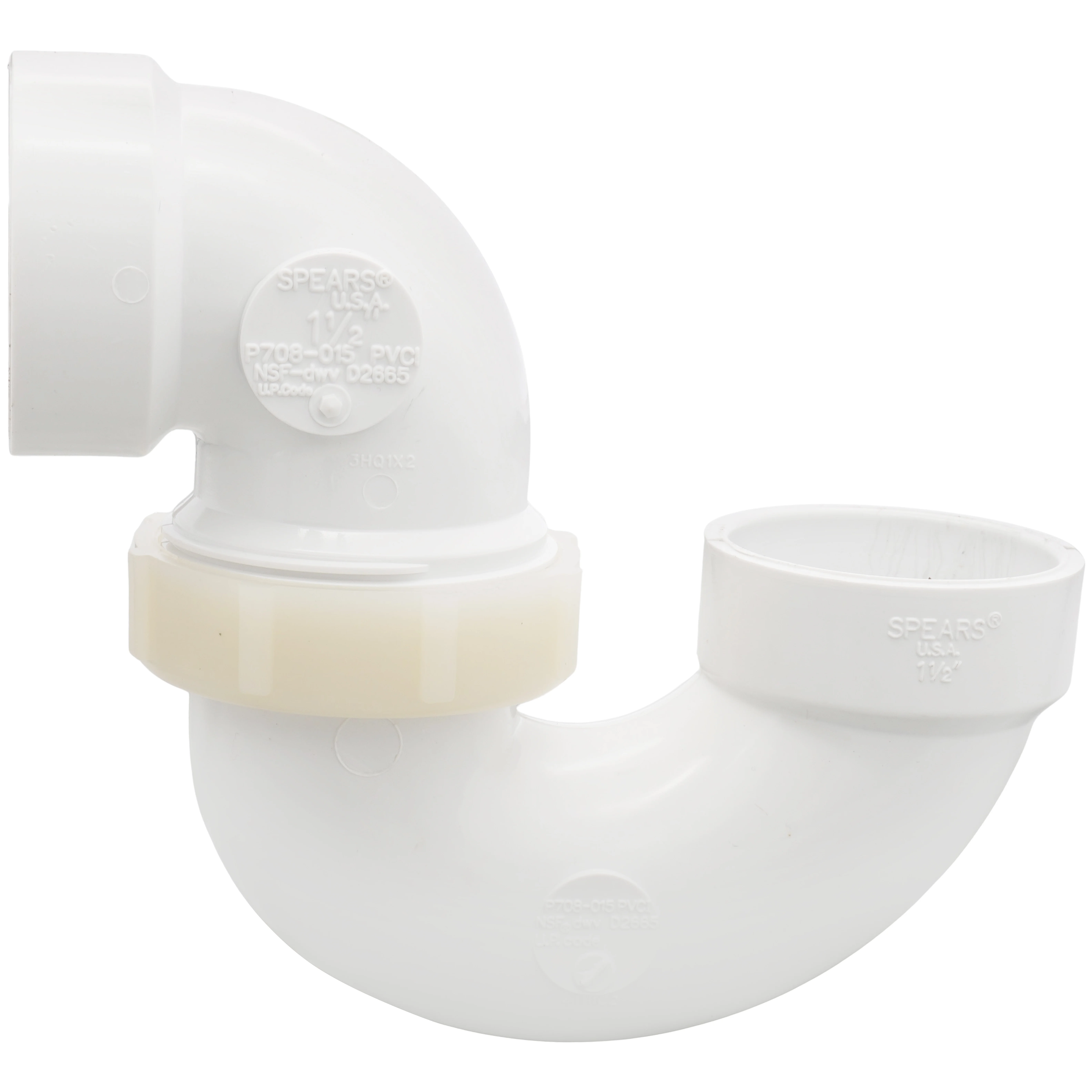 SPEARS VALVES P708P-015 Adjustable P-Trap, Plastic Nut, Hub x Hub, 1-1/2 Size, PVC