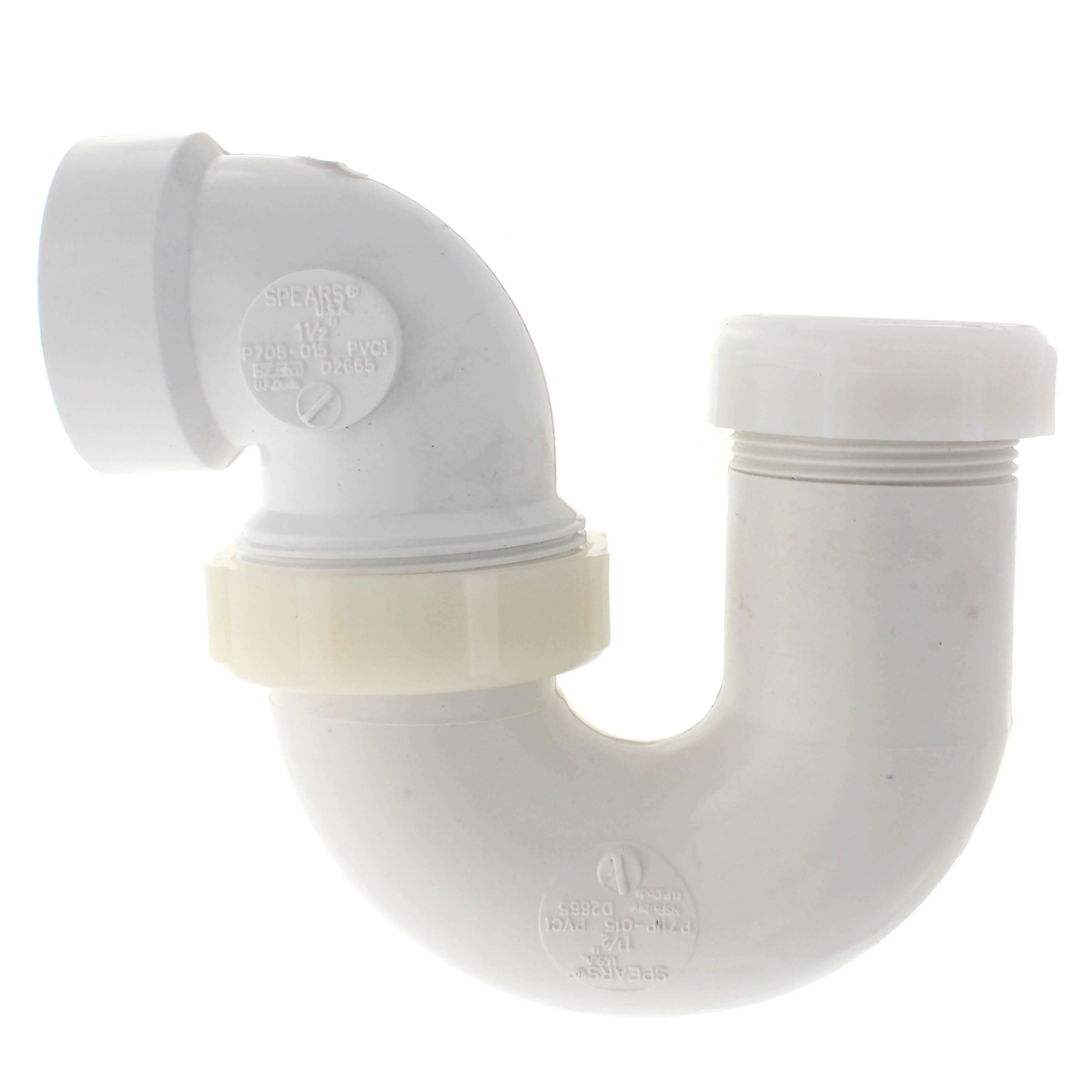 SPEARS VALVES P711P-015 P-Trap, Plastic Nut, Slip x Hub, 1-1/2 Size, PVC