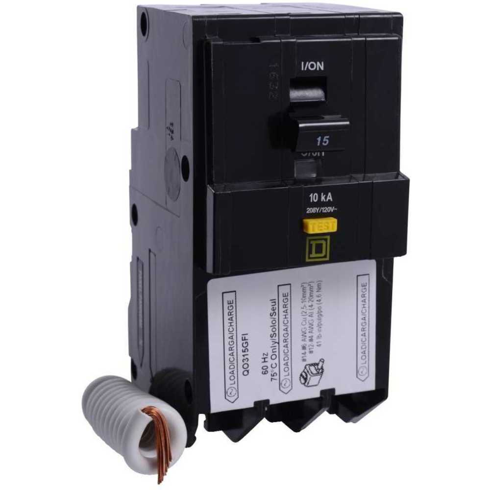 SQUARE D QO315GFI Plug In Circuit Breaker, 120 VAC, Toggle, Pressure Plate