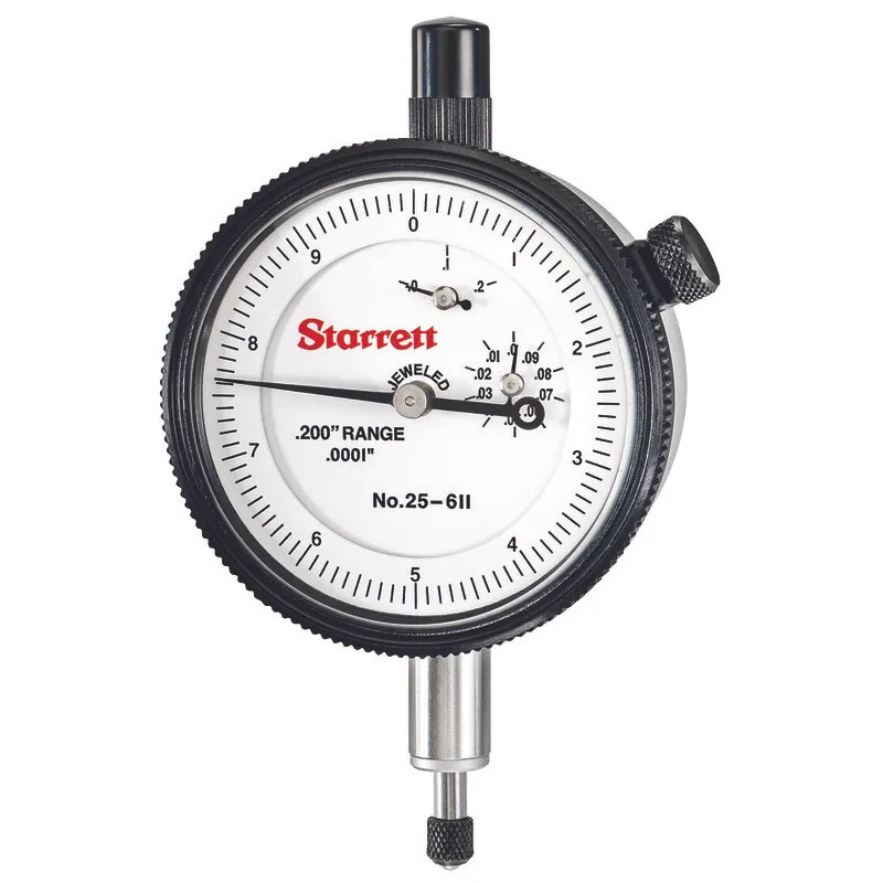 STARRETT 25-611J 53301 Dial Indicator, 0.2 Inch Range, 0-10 Dial Reading