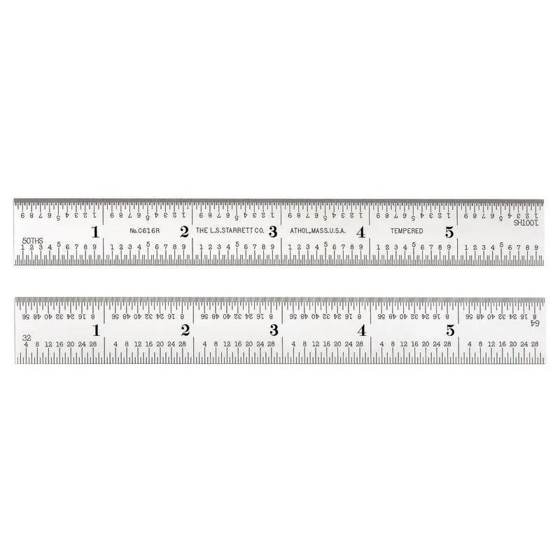 STARRETT C616R-6 52701 Spring Tempered Steel Rule, with Inch Graduations