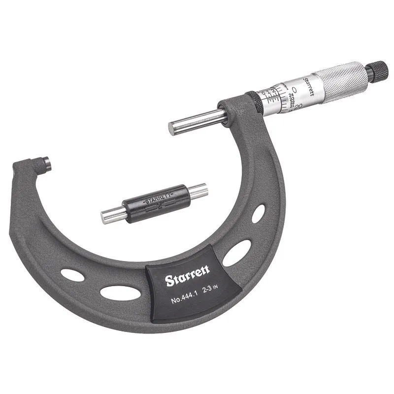 STARRETT T444.1XRL-3 52085 Mechanical Outside Micrometer, Inchto Inch Range, +/-0.0001 Inch Accuracy, Flat