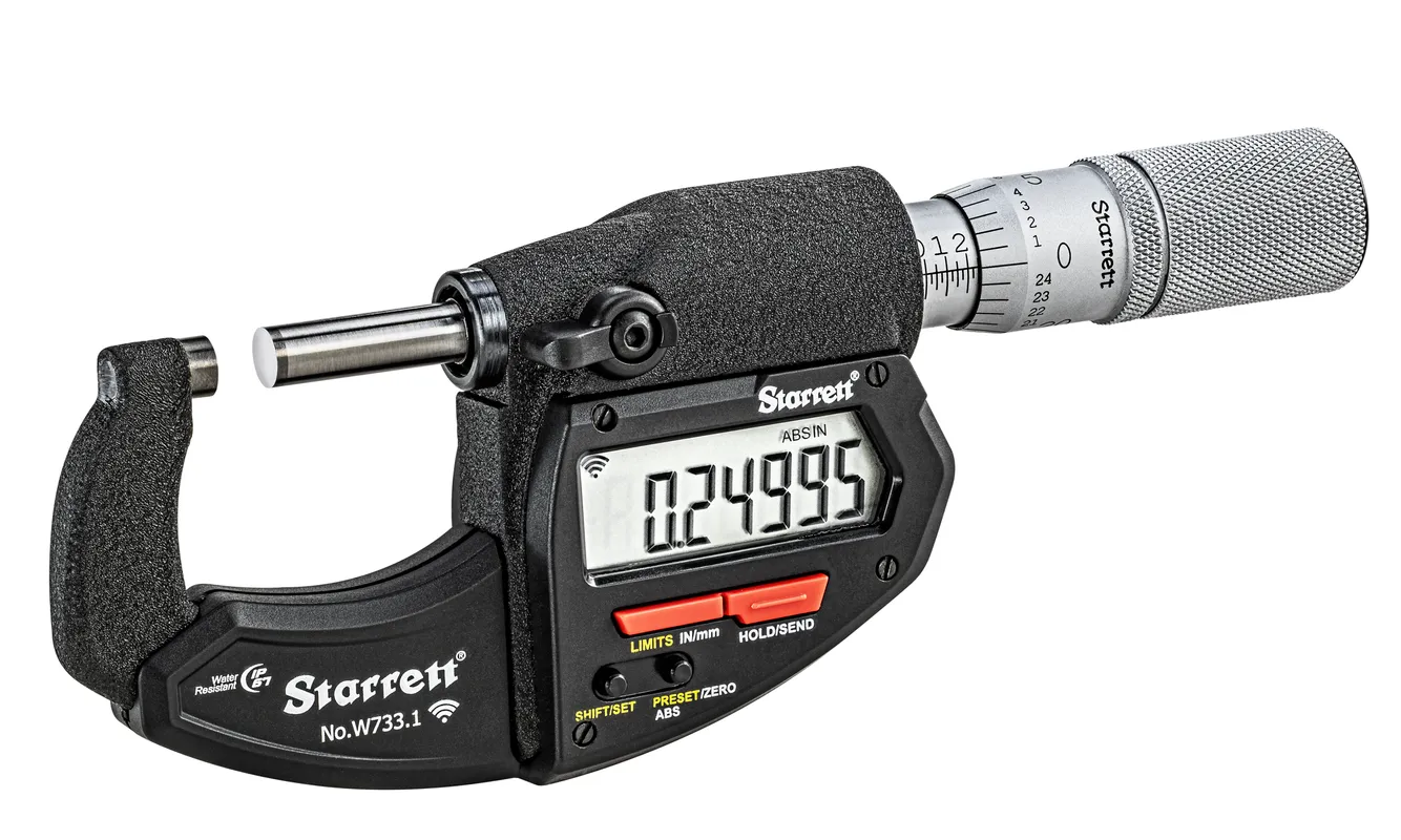 STARRETT W733.1XFL-1 60585 Wireless Digital Micrometer, 0 Inch to 1 in/0 mm to 25.4 mm Range, IP67