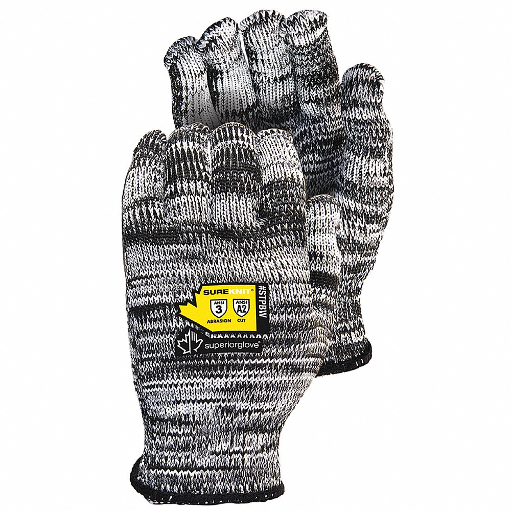 SUPERIOR STPBW/L Knit Gloves, Size L, ANSI Cut Level A2, Uncoated, Uncoated, Cotton
