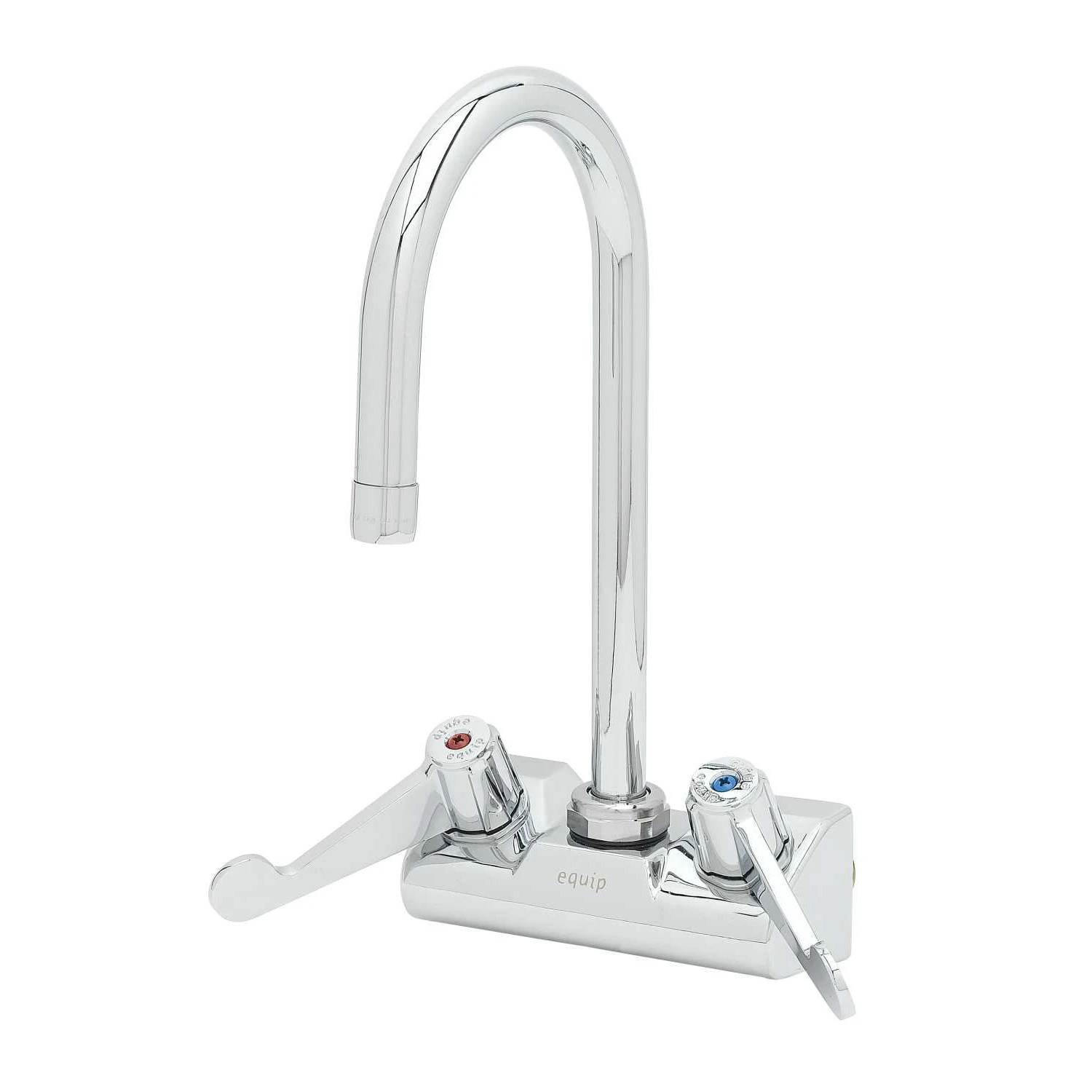 T&S 5F-4WWX05 Faucet, 4 Inch, Wall Mt., With 5 1/2 Inch Swivel Gooseneck, 4 Inch Wrist Handles