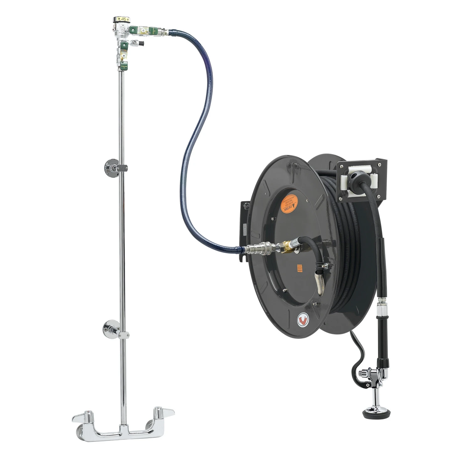 T&S 5HR-242-01XE1 Hose Reel System, 8 Inch Wall Mt. Base Faucet, 3/8 Inch x 50 Feet Hose