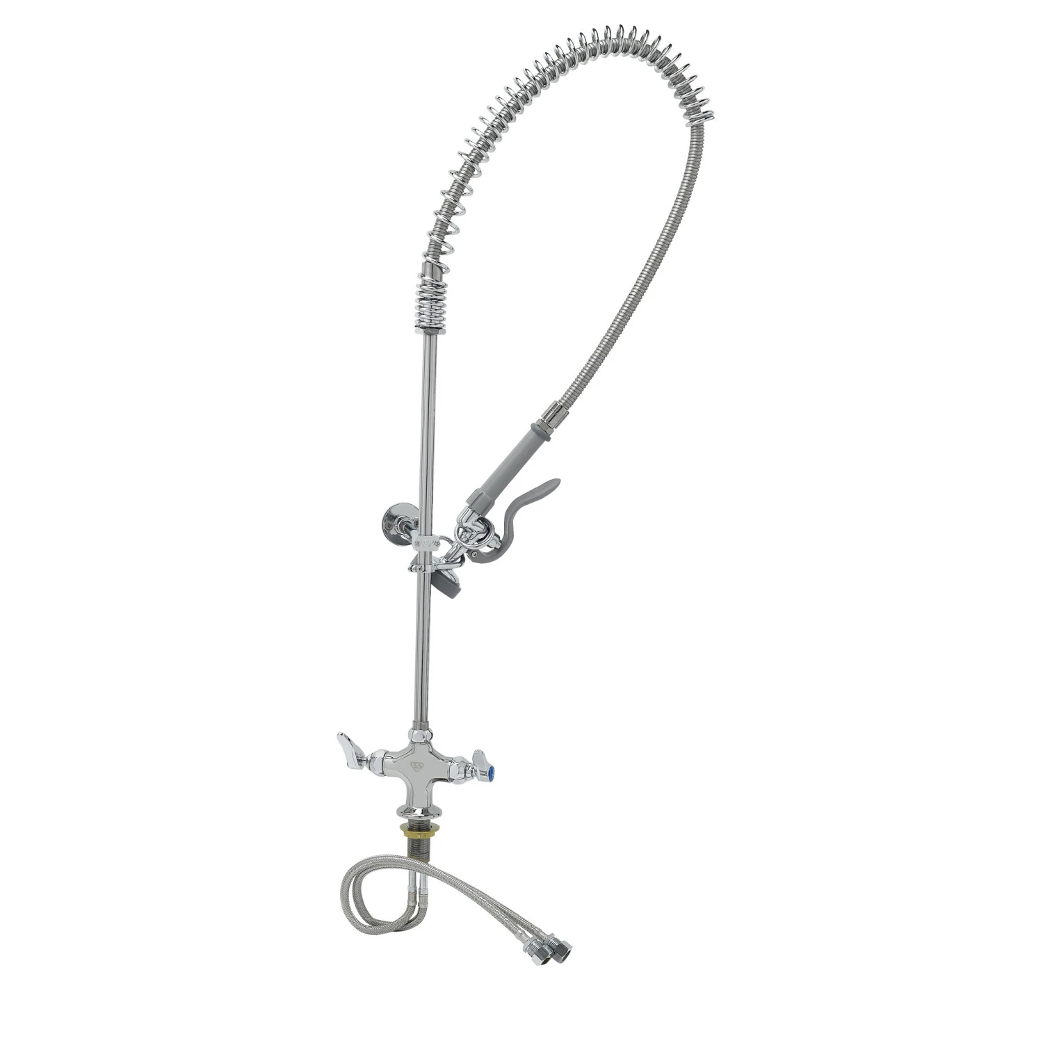 T&S B-0113-B-20R Pre-Rinse Faucet, Spring Action, Single Hole Base, Flex Lines, Wall Bracket