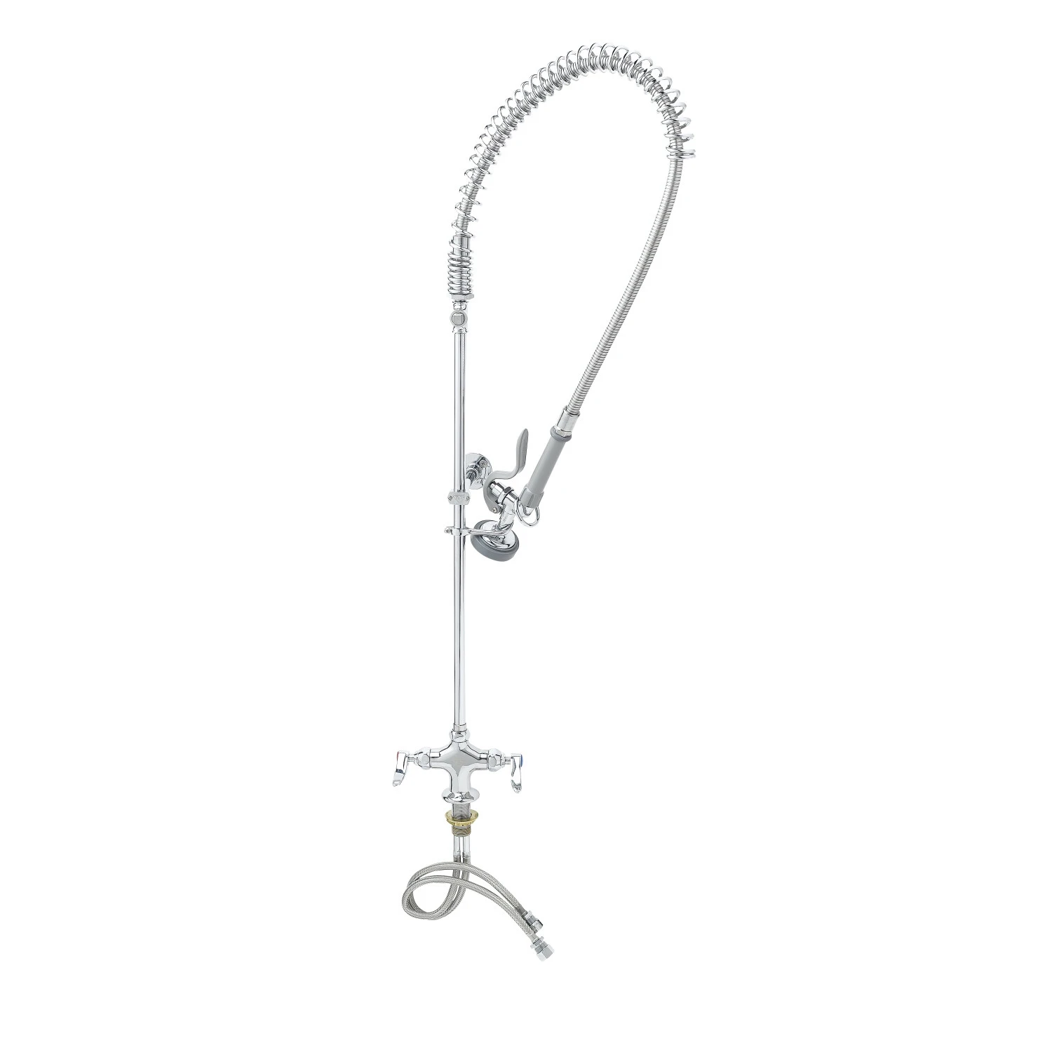 T&S B-0113-B-TEE Pre-Rinse Faucet, Single Hole Base, Flex Lines, Wall Brkt, Accessory Fitting Tee