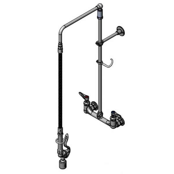 T&S B-0131-BC-28H Pre-Rinse Faucet, 8 Inch Wall Mount, Overhead Swivel Arm, Low-Flow Spray Valve