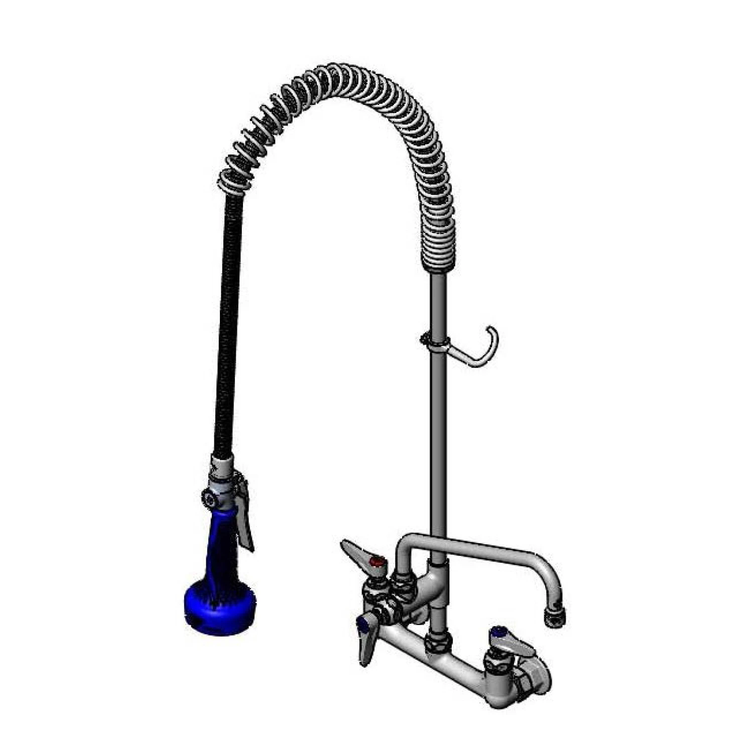 T&S B-0133-A10-08C Pre-Rinse Faucet, Spring Action, 8 Inch Wall Mount Base, 10 Inch Add-On Faucet