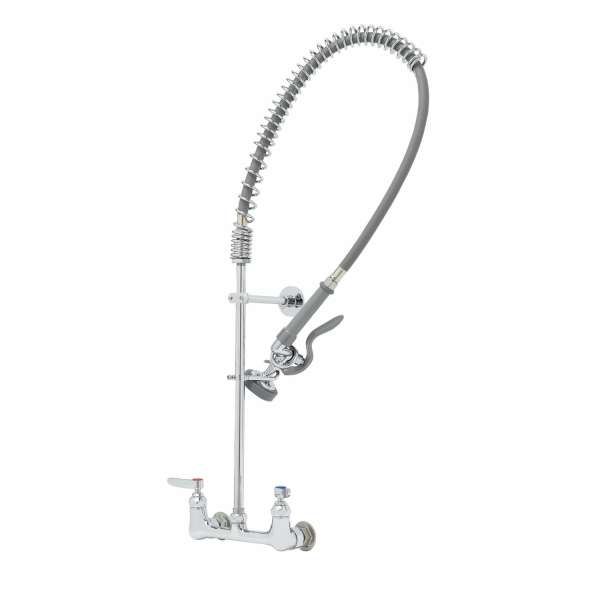 T&S B-0133-BR Pre-Rinse Faucet, Spring Action, 8 Inch Wall Mount Base, 44 Inch PVC Hose