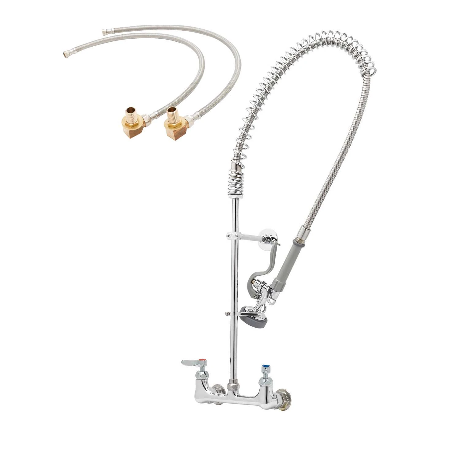 T&S B-0133-CR-B-KIT Pre-Rinse Unit, 8 Inch Wall Mount Base Faucet, Wall Bracket, Stainless Steel Hose