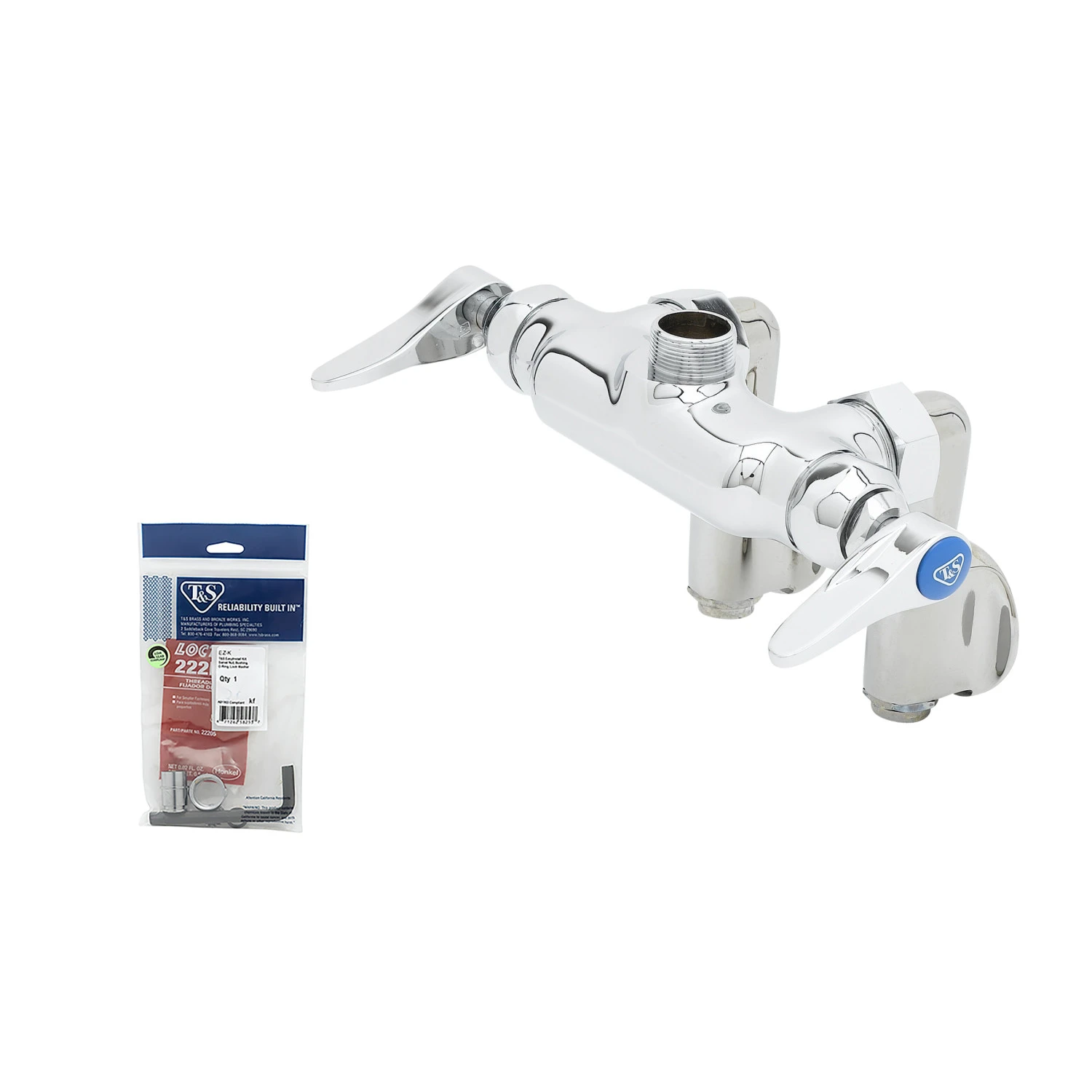 T&S B-0342-LN Double Pantry Swivel Base Faucet, Wall Mt., Adjustable Center, Integral Stops