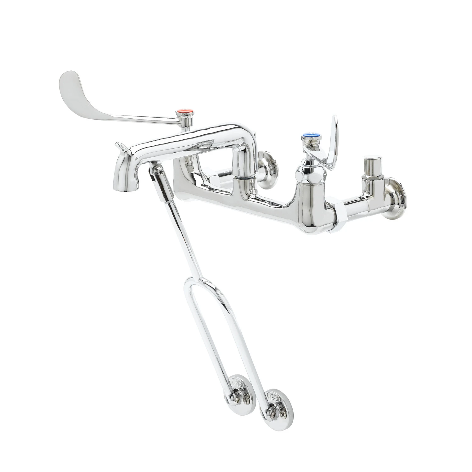 T&S B-0651-06 Service Sink Faucet, Wall Mt., 8 Inch Centers, 6 Inch Wrist Handles, Pail Hook