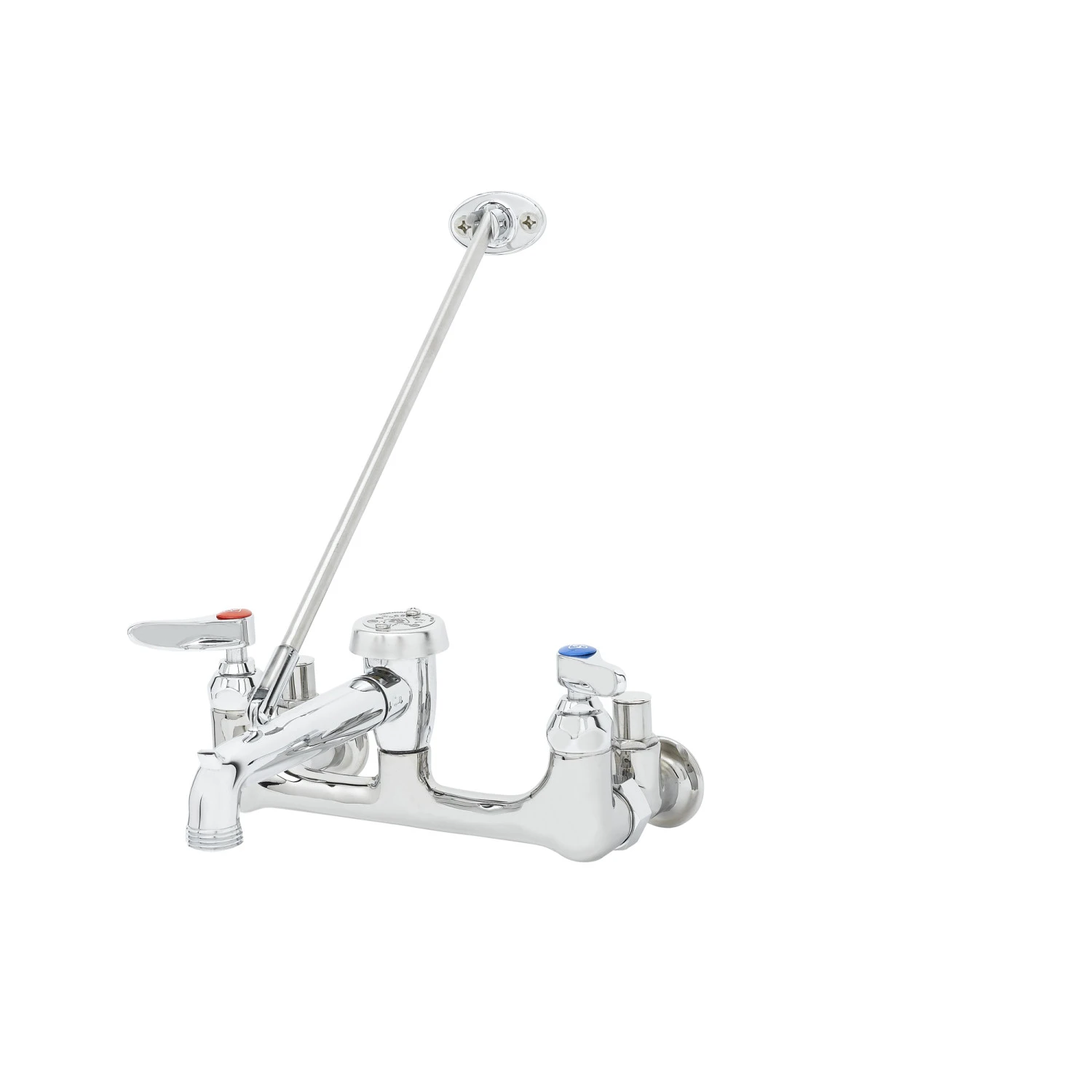T&S B-0666-POL Service Sink Faucet, Wall Mt., 8 Inch Centers, Integral Stops, Polished