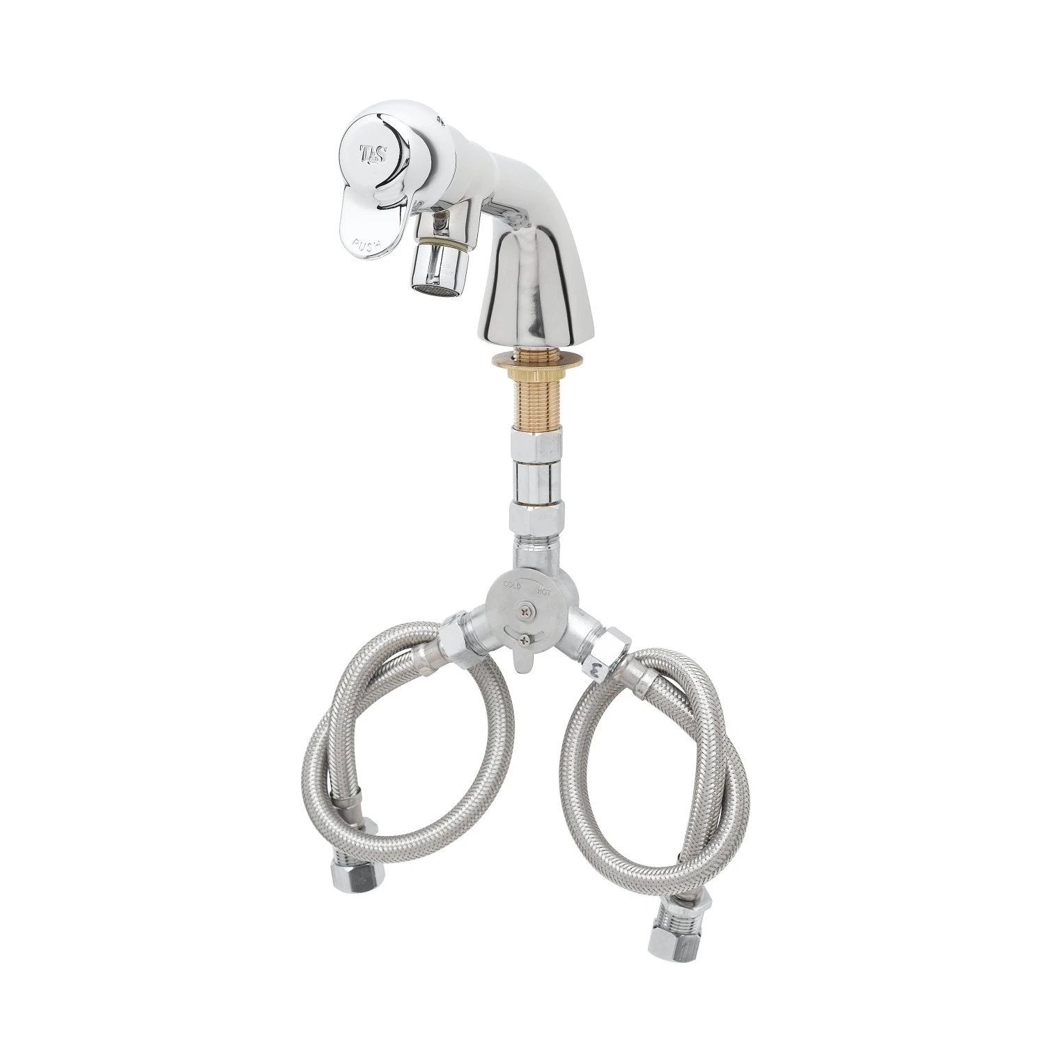 T&S B-0807-PA Single Temp Metering Faucet, Pivot Action Metering, Flex Hoses