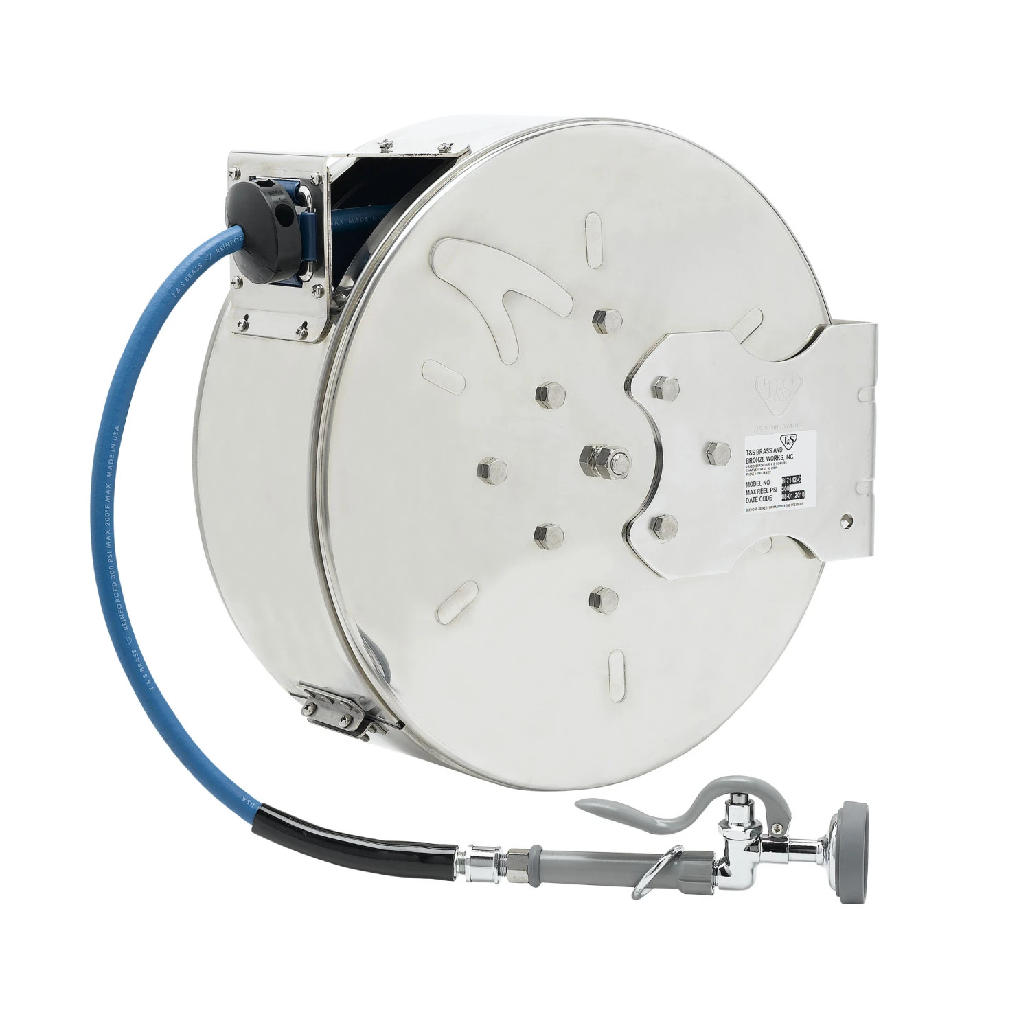 T&S B-7142-C01M Hose Reel, 3/8 Inch ID x 50 Feet Hose, Enclosed SS Reel, Spray Valve
