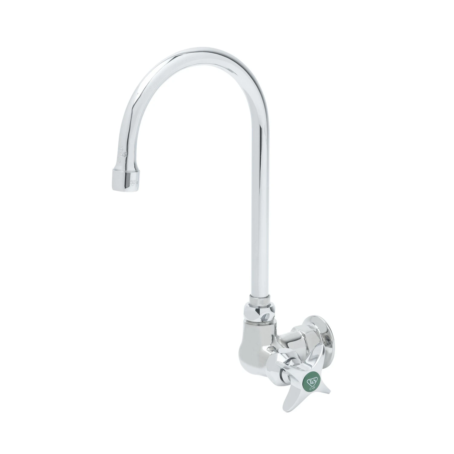 T&S BL-5710-01A-TL Lab Faucet, Single Temp, Wall Mount, Tin-Lined, Gooseneck, 2.2 GPM Aerator, 4-Arm Handle