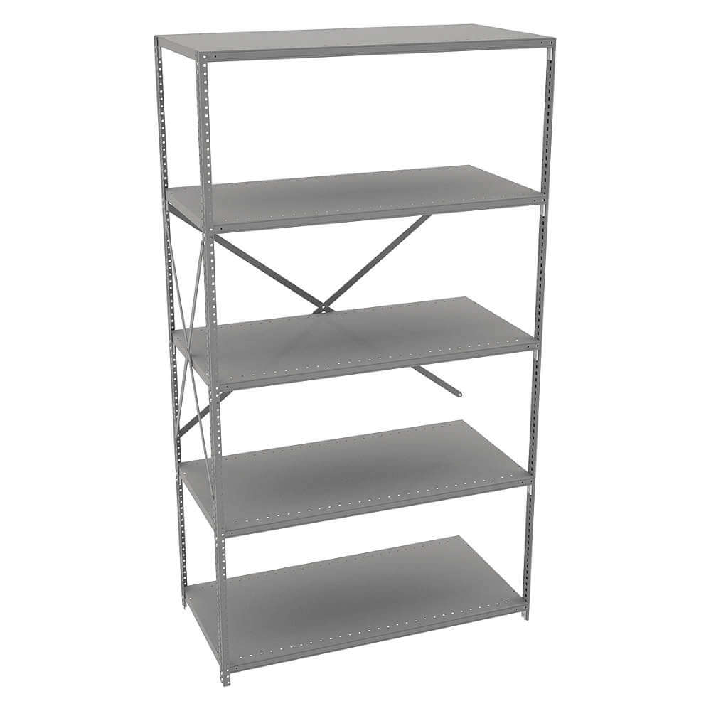 | Includes | (2) Offset Angle Post, (20) Shelf Chips, (5) Adjustable Shelves, Back Sway Brace, Beaded T-Post, Side Sway Braces |
