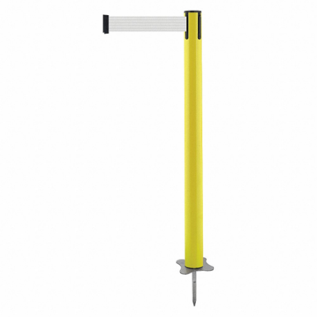 TENSABARRIER 884-35-MAX-B1X-C Spike Post, Plastic, Yellow, 43 Inch Height, 2 1/2 Inch Dia., Stake, White
