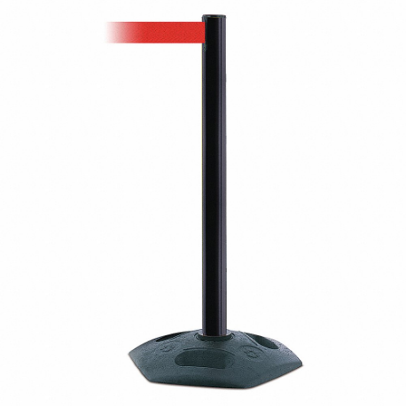 TENSABARRIER 886-33-MAX-NO-R5X-C Barrier Post With Belt, PVC, Black, 38 Inch Height, 2 1/2 Inch Dia.