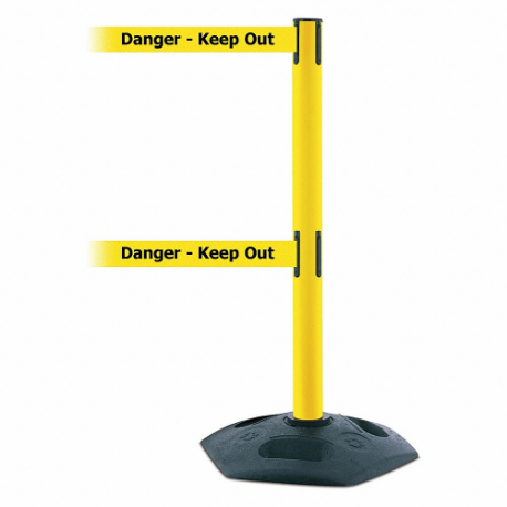 TENSABARRIER 886T2-35-MAX-NO-YDX-C Barrier Post With Belt, PVC, Yellow, 38 Inch Height, 2 1/2 Inch Dia., Hexagonal