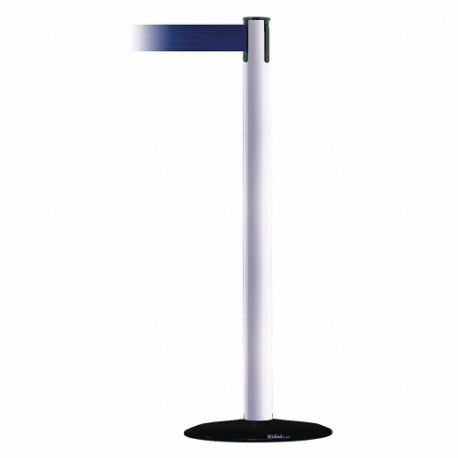 TENSABARRIER 889B-33-32-STD-NO-L5X-C Barrier Post With Belt, Steel, White, 38 Inch Height, 2 1/2 Inch Dia.