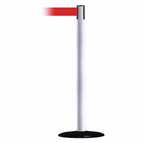 TENSABARRIER 889B-33-32-STD-NO-R5X-C Barrier Post With Belt, Steel, White, 38 Inch Height, 2 1/2 Inch Dia.