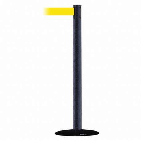 TENSABARRIER 889B-33-89-MAX-NO-Y5X-C Barrier Post With Belt, Steel, Black Wrinkle, 38 Inch Height, 2 1/2 Inch Dia.
