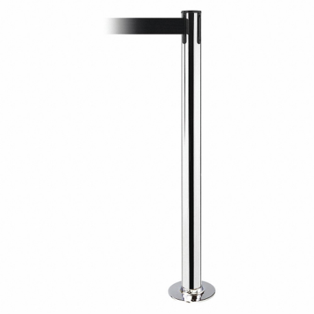 TENSABARRIER 889F-1P-1P-STD-NO-B9X-C Fixed Barrier Post With Belt, Polished Chrome, 36 1/2 Inch Post Height, Flange, Black