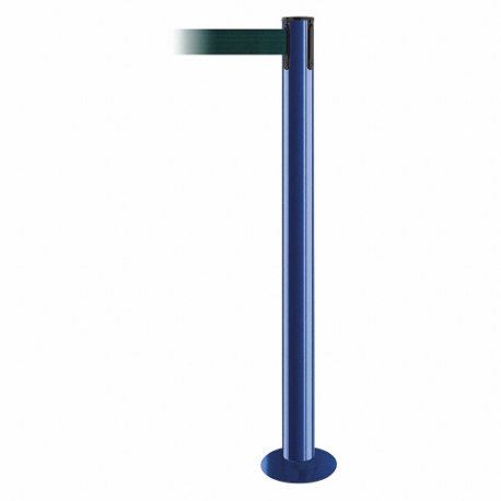 TENSABARRIER 889F-23-23-MAX-NO-G6X-C Fixed Barrier Post With Belt, Blue, 36 1/2 Inch Post Height, 2 1/2 Inch Post Dia, Green