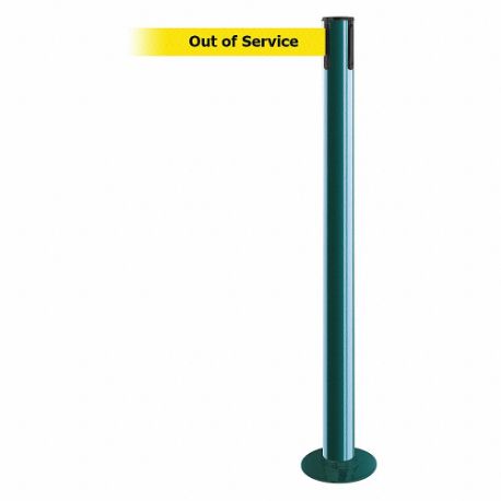 TENSABARRIER 889F-28-28-STD-NO-YEX-C Fixed Barrier Post With Belt, Steel, Green, 36 1/2 Inch Post Height, 2 1/2 Inch Post Dia