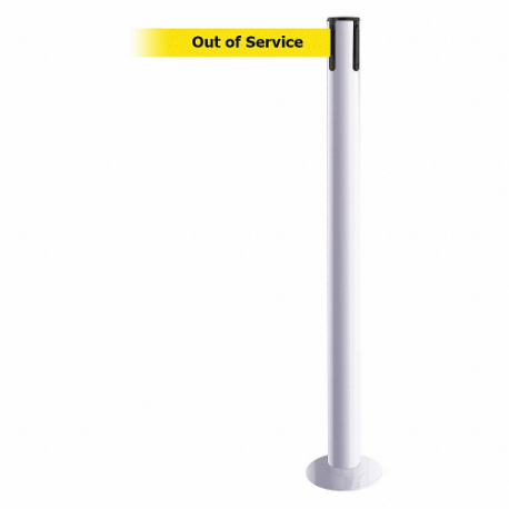 TENSABARRIER 889F-32-32-STD-NO-YEX-C Fixed Barrier Post With Belt, Steel, White, 36 1/2 Inch Post Height, 2 1/2 Inch Post Dia