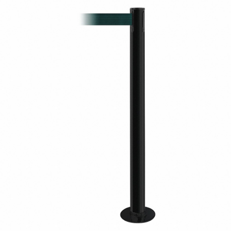 TENSABARRIER 889F-33-33-STD-NO-G6X-C Fixed Barrier Post With Belt, Steel, Black, 36 1/2 Inch Post Height, 2 1/2 Inch Post Dia
