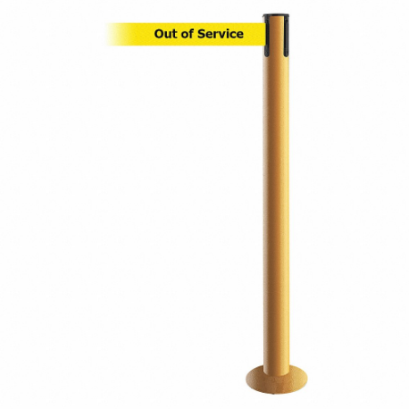 TENSABARRIER 889F-35-35-STD-NO-YEX-C Fixed Barrier Post With Belt, Steel, Yellow, 36 1/2 Inch Post Height, 2 1/2 Inch Post Dia