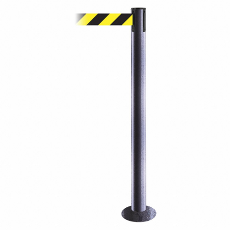 TENSABARRIER 889F-73-73-STD-NO-D4X-C Fixed Barrier Post With Belt, Steel Hammer Tone, 36 1/2 Inch Post Height, Flange, Steel