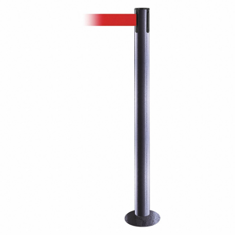 TENSABARRIER 889F-73-73-STD-NO-R5X-C Fixed Barrier Post With Belt, Steel Hammer Tone, 36 1/2 Inch Post Height, Flange, Red