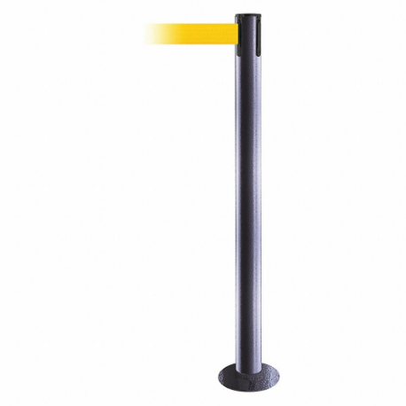 TENSABARRIER 889F-73-73-STD-NO-Y5X-C Fixed Barrier Post With Belt, Steel, Gray Hammer Tone, 36 1/2 Inch Post Height, Flange