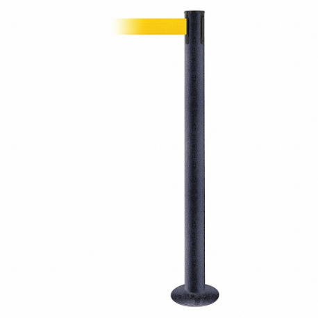 TENSABARRIER 889F-89-89-STD-NO-Y5X-C Fixed Barrier Post With Belt, Steel, Black Wrinkle, 36 1/2 Inch Post Height, Flange