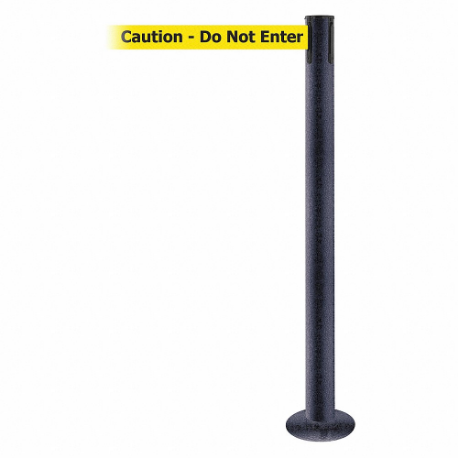 TENSABARRIER 889F-89-89-STD-NO-YAX-C Fixed Barrier Post With Belt, Steel, Black Wrinkle, 36 1/2 Inch Post Height, Flange