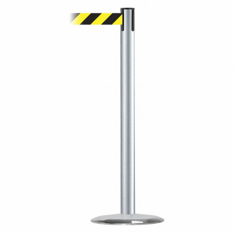 TENSABARRIER 889U-1S-1S-MAX-NO-D4X-C Barrier Post With Belt, Steel, Satin Chrome, 38 Inch Height, 2 1/2 Inch Dia.