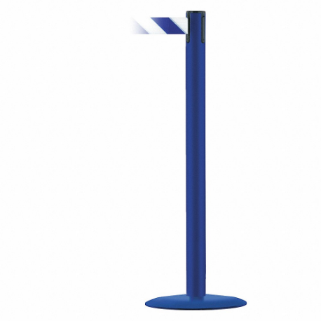 TENSABARRIER MARINEPOST-23-STD-NO-D1X-C Barrier Post With Belt, Stainless Steel, Blue, 38 Inch Height, 2 1/2 Inch Dia.