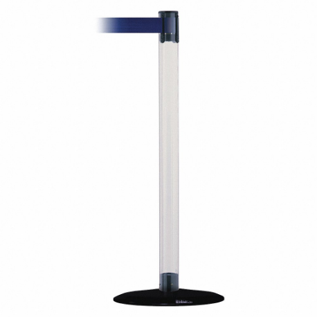 TENSABARRIER TCLB-33-STD-NO-L5X-C Barrier Post With Belt, Polycarbonate, Clear, 38 Inch Height, 2 1/2 Inch Dia.