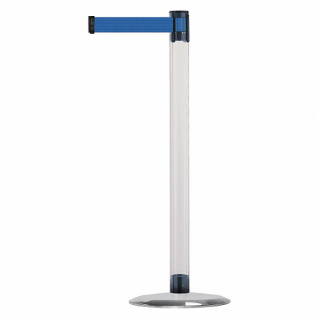 TENSABARRIER TCLU-1S-STD-NO-L5X-C Barrier Post With Belt, Polycarbonate, Clear, 38 Inch Height, 2 1/2 Inch Dia.
