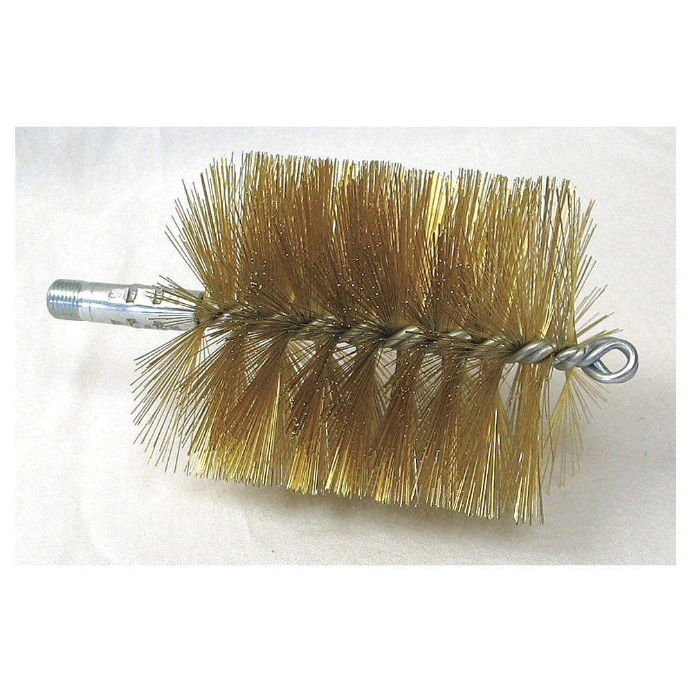 TOUGH GUY 2VNA1 Tube Brush, Single Spiral/Double Stem, Brass, 4 1/2 in Brush Lg, 4 in Brush Dia.