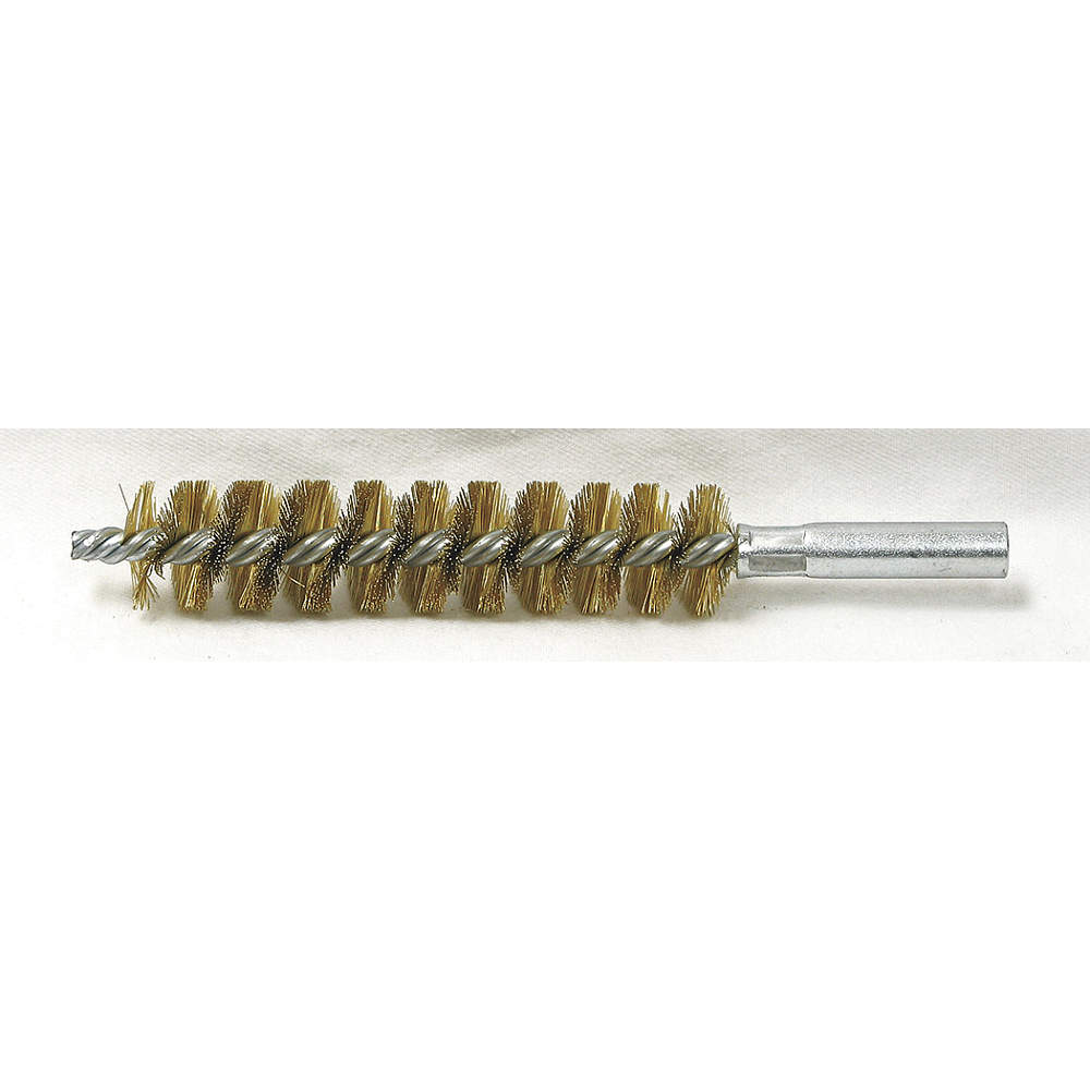 TOUGH GUY 3HGU4 Condenser Tube Brush, Single Spiral/Double Stem, Brass, 4 in Brush Lg, 7/8 in Brush Dia., 12-24 Female Thread