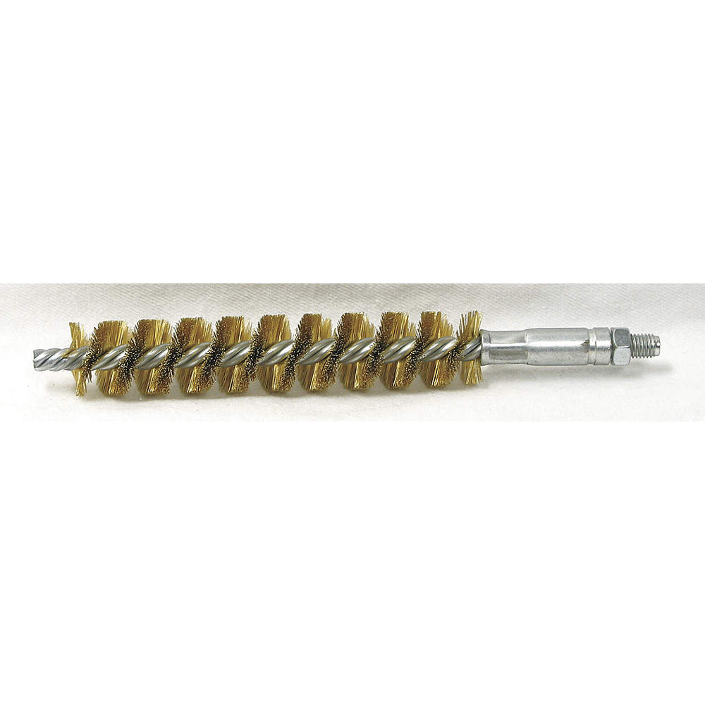 TOUGH GUY 3HHA6 Condenser Tube Brush, Single Spiral/Double Stem, Brass, 4 in Brush Lg, 11/16 in Brush Dia., Steel Handle, 1/4-28 Thread